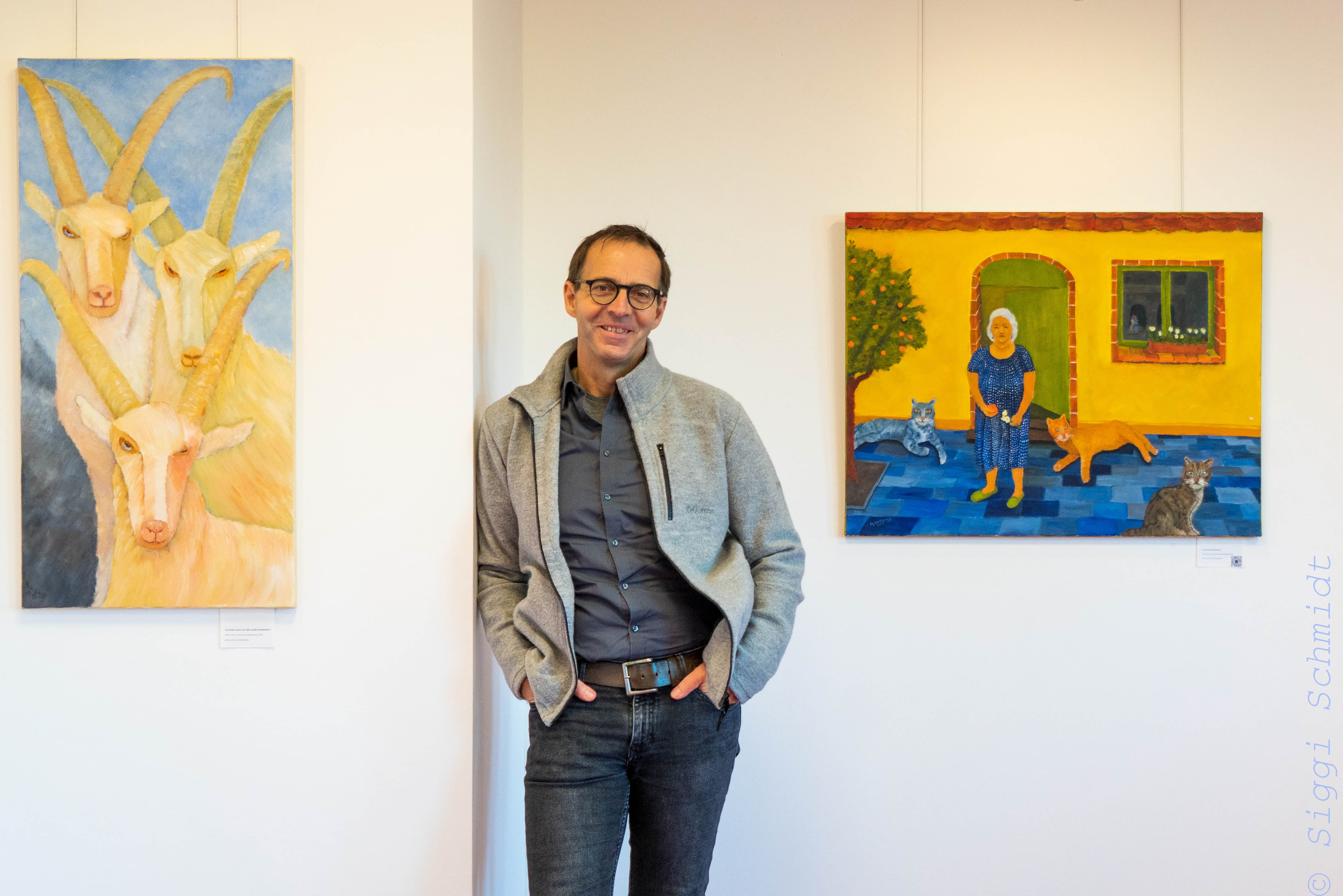 Meine Bilder sind gemalte Geschichten, fast jedes erzählt von Erlebtem oder kurzen Eindrücken. Damit tauche ich in die Welt der Malerei ein, verlasse die Realität, lasse mich treiben, reagiere auf das, was auf der Leinwand geschieht, bis ein Werk meiner Vorstellung und malerischen Ansprüchen genügt.