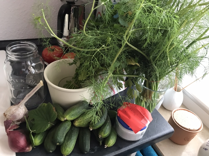 Gurken salzig einlegen scheint eine Kunst zu sein, die überwiegend von Ländern des Ostens beherrscht und weitergegeben wird. Ich höre Kalinka zu, die mir mit dieser, wie ich finde typisch liebevollen Art und mit russischem Akzent die Geheimnisse ihrer Gurken erklärt. Suchen sie nach „Gurken milchsauer einlegen Kalinka“ und sie werden sie finden.
