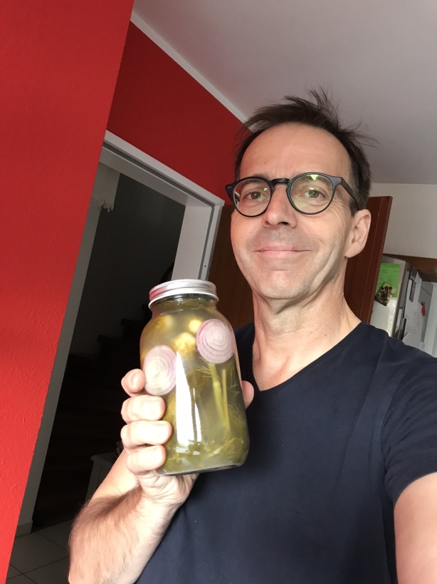Am Ende halte ich mich stark an die Anweisungen unserer polnischen Freundin und kann die Erfahrungen von Kalinka einfließen lassen. Das Einlegen selber macht Spaß, wie Kochen generell, und ich bin so stolz auf meine ogórki das ich die beiden Gläser fotografiere und sie in meinen WhatsApp Status poste. Das scheint ein Thema zu sein, das meine Kontakte interessant finden. 29 von ihnen schauen sich meine Gurken an, einige senden mir Kommentare, finde ich prima.